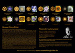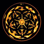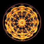 Ein rundes Wassergefäß (5-10 cm Durchmesser) wird von unten her durch Sinustöne in Vibration versetzt. Eine senkrecht über der Wasseroberfläche befindliche Lampe läßt die Verteilung der Wellenberge und Wellentäler erkennen, da nur von diesen das Licht wieder nach oben in die Kamera zurückreflektiert wird. Abhängig von der Temperatur, der Wassermenge und anderen Einflußgrößen können bei bestimmten Frequenzen aus der Durchdringung der Wellen sogenannte "stehende Wellen" hervorgehen: die unterschiedlichen Wellenbewegungen stören sich nicht gegenseitig sondern bilden ein einheitlich schwingendes Ganzes. Inmitten des überall vibrierenden Wassers entsteht auf einmal eine übergeordnete ruhende Struktur. Die Ordungsprinzipien solcher Schwingungsfelder können als Bauplan, als Matrix für die verschiedensten Gestaltbildungen dienen. |